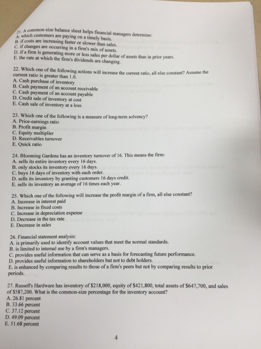 Solved A commonsize balance sheet helps financial managers