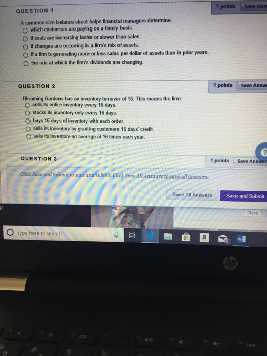 Solved 1 points Save Ans QUESTION 1 A commonsize balance