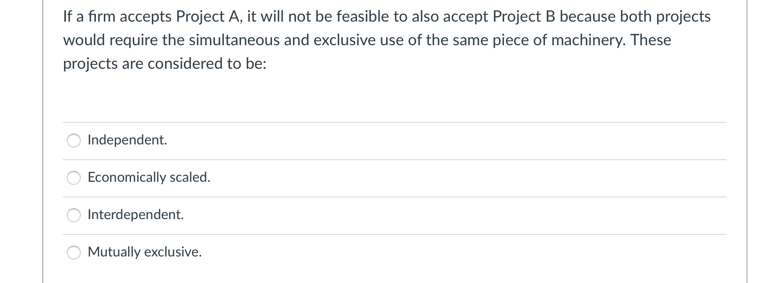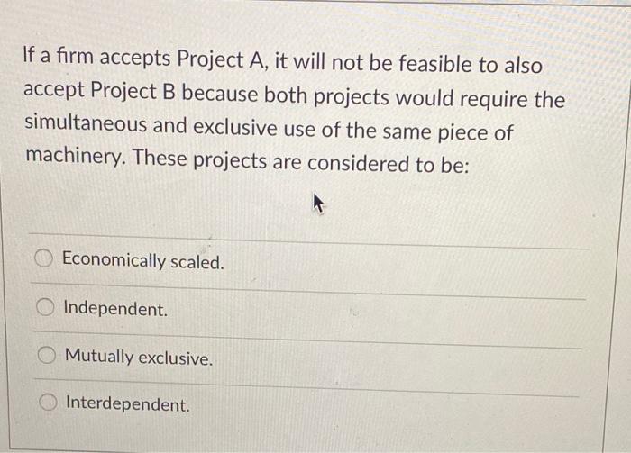 A Firm Should Accept Independent Projects If - The payback is less than the irr. It can be used as a rough screening device to eliminate those projects whose returns do not. When the firm is considering independent projects, if the projects npv exceeds zero the firm. There are several criteria that a. When should a company accept independent projects? For mutually exclusive projects, the net present value (npv) is usually preferred over methods. An independent project should be accepted if it: Produces a net present value that is greater. The firm should accept independent projects if: If npv is greater than $0, accept the project.