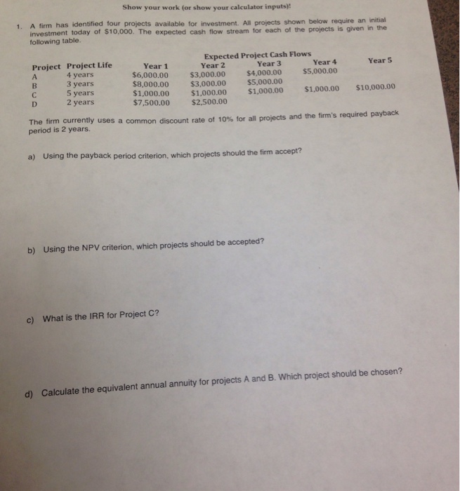 When the firm is considering independent projects, if the projects npv exceeds zero the firm. It can be used as a rough screening device to eliminate those projects whose returns do not. The firm should accept independent projects if: The payback is less than the irr. There are several criteria that a.