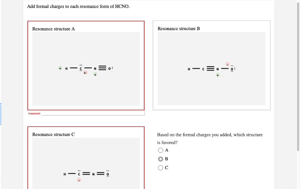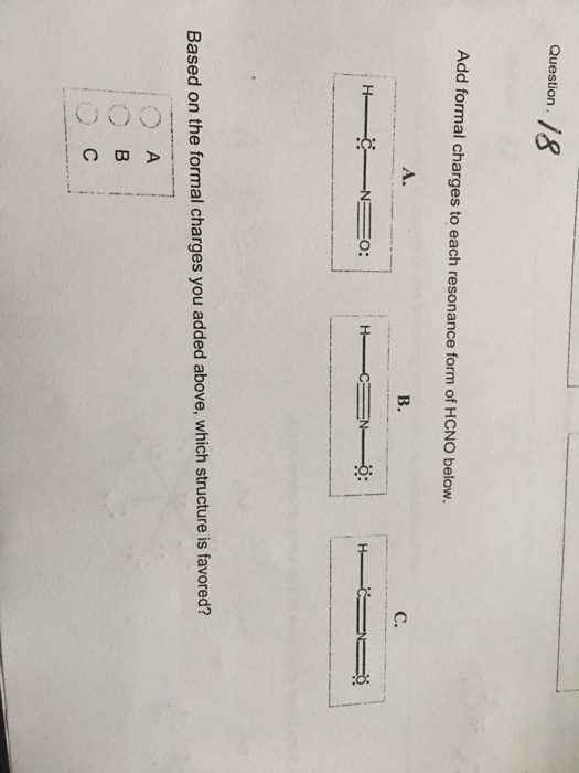 Solved Add formal charges to each resonance form of HCNO.