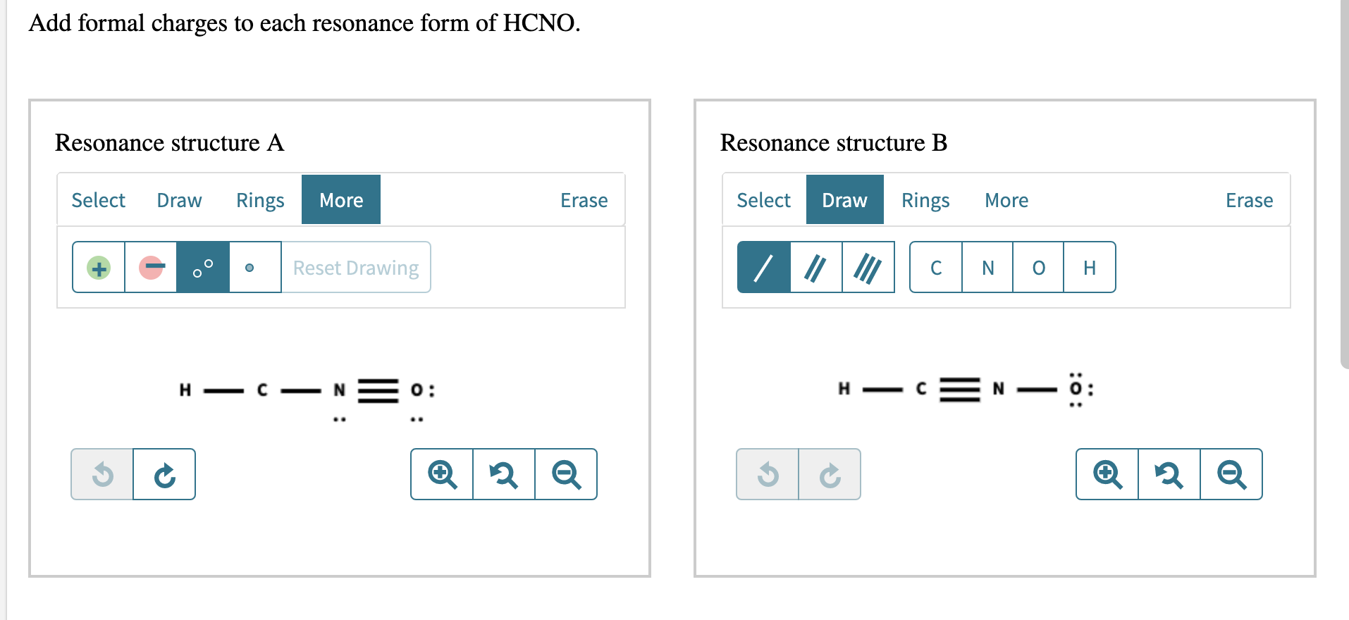 Solved Add formal charges to each resonance form of HCNO