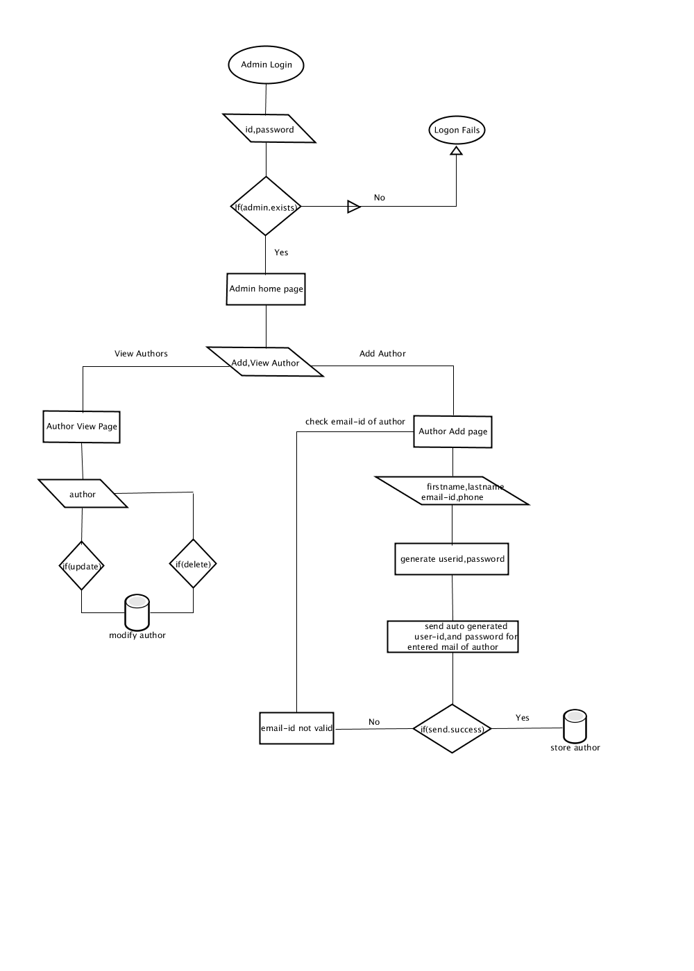 Admin Panel Flow chart and Design Templates. Flow chart template