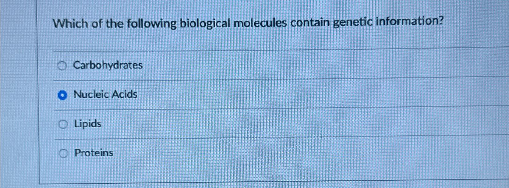 Solved Which of the following biological molecules contain