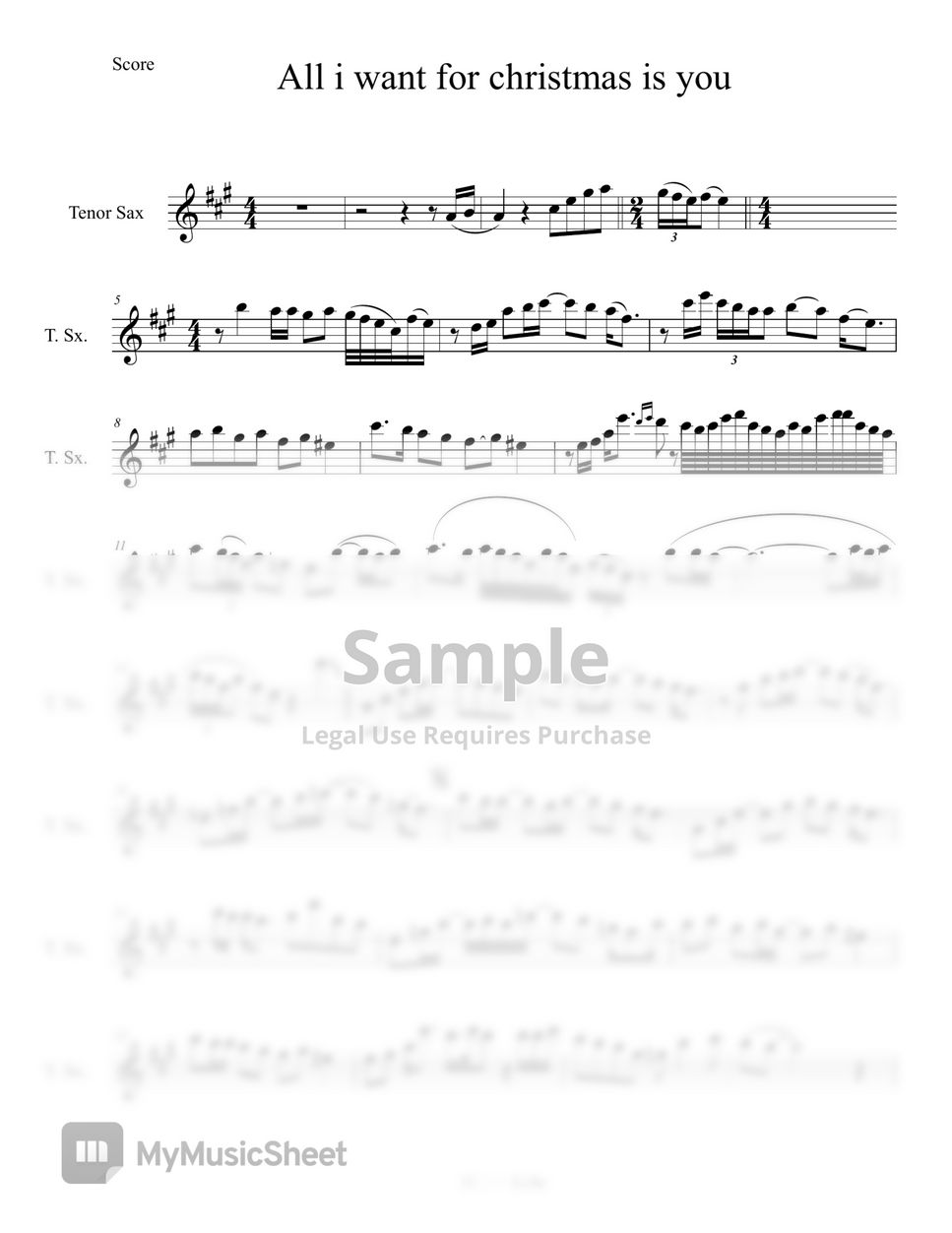 Download and print all i want for christmas is you sheet music for alto sax solo by mariah.