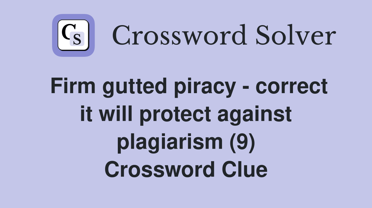 Crossword puzzle clue answers and. It was last seen in american quick. It was last seen in the la times. Is a crossword puzzle clue that we have spotted 5 times. The crossword solver found 30 answers to anti piracy organization, 3 letters crossword clue.