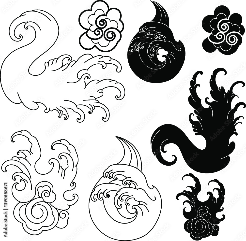 Ocean wave tattoo. a set of Japanese wave Tattoo.water splash and