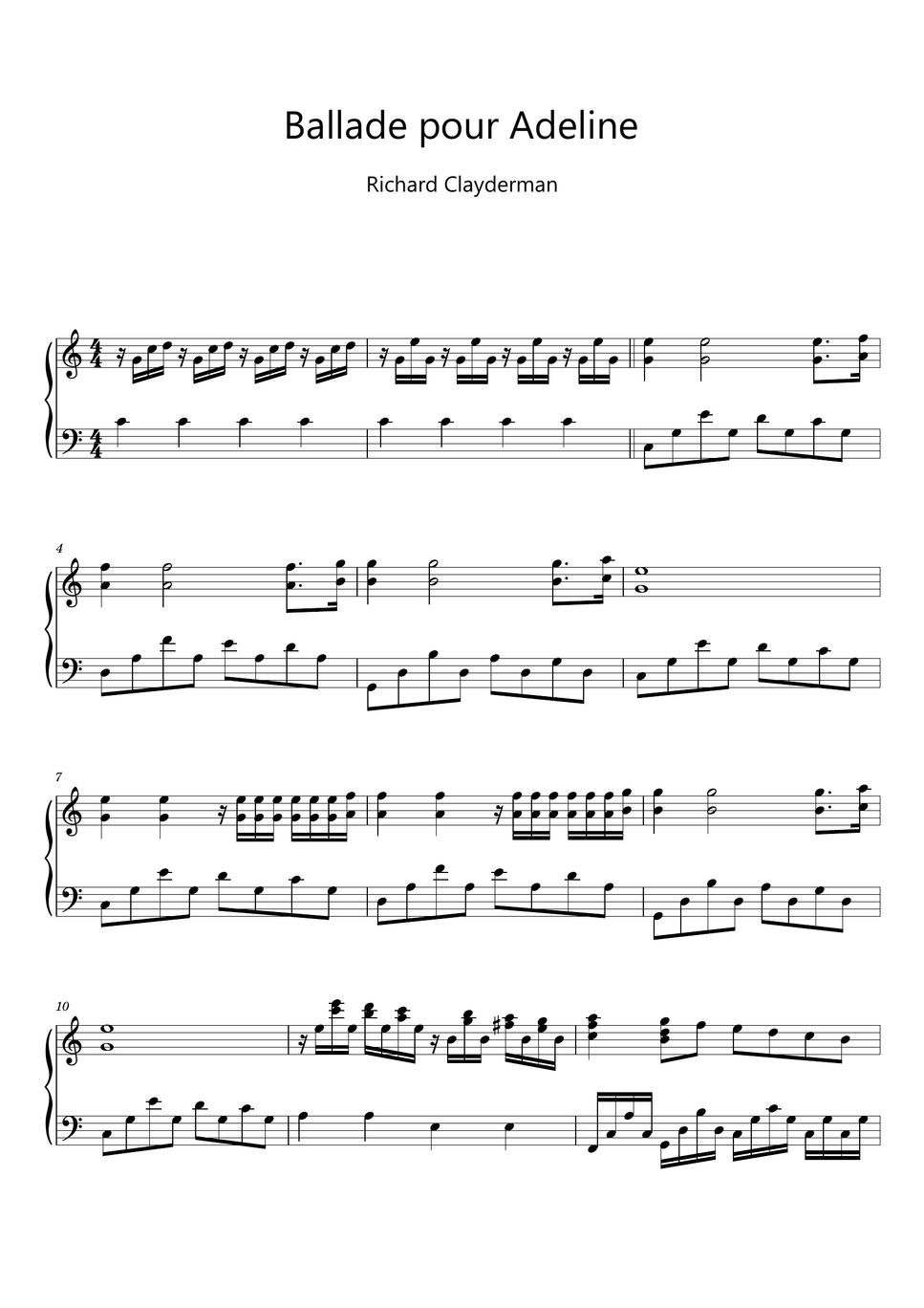 Print And Download Ballade Pour Adeline By Richard Clayderman Free, Sheet Music Arranged For Acoustic Grand Piano, Download In Pdf,.