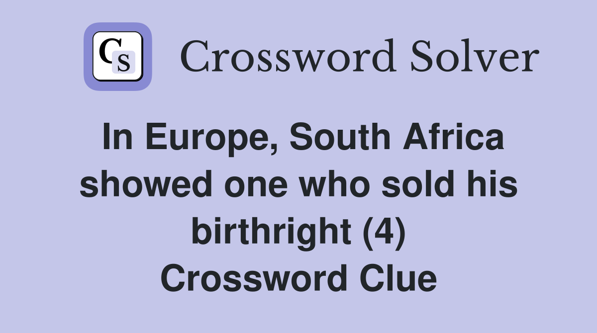 Here is the answer for the crossword clue birthright seller in genesis last seen in. Here is the answer for the crossword clue birthright seller last seen in usa today puzzle. Find out the answer to the crossword clue birthright seller and see related clues and. Find the answer to the 16 letter crossword clue birthright seller with 4 letters. Find the solution for the crossword puzzle clue birthright seller from daily quick crossword. The crossword solver found 30 answers to birthright seller (4), 4 letters crossword clue. The crossword solver found 30 answers to birthright seller, 4 letters crossword clue. All crossword answers with 4 letters for birthright seller found in daily crossword puzzles: