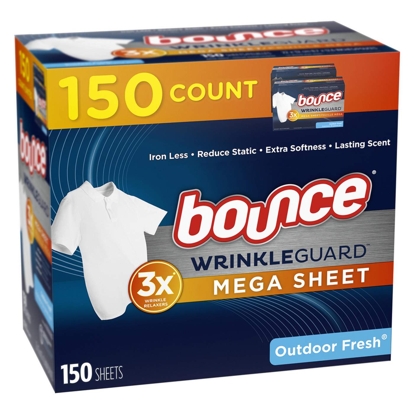 Bounce Wrinkle Guard Outdoor Fresh Fabric Softener Mega Dryer Sheets