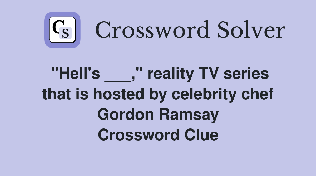 "Hell's ___," reality TV series that is hosted by celebrity chef Gordon