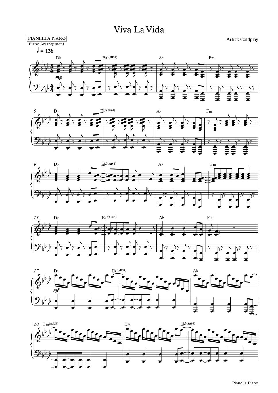 Coldplay Viva La Vida (Piano Sheet) Лист by Pianella Piano