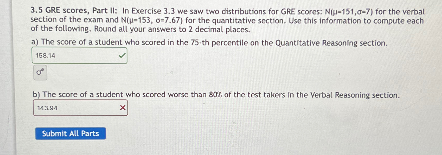 3.5 GRE scores, Part II In Exercise 3.3 we saw two