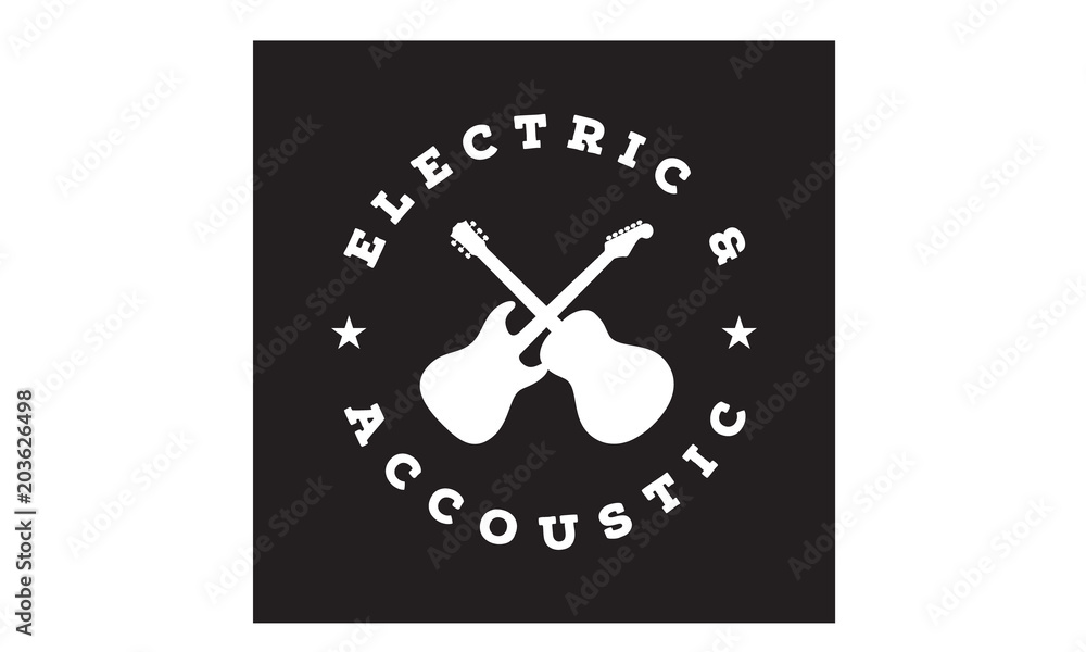Cross Guitar Music Band Emblem Stamp Vintage Retro logo design Stock