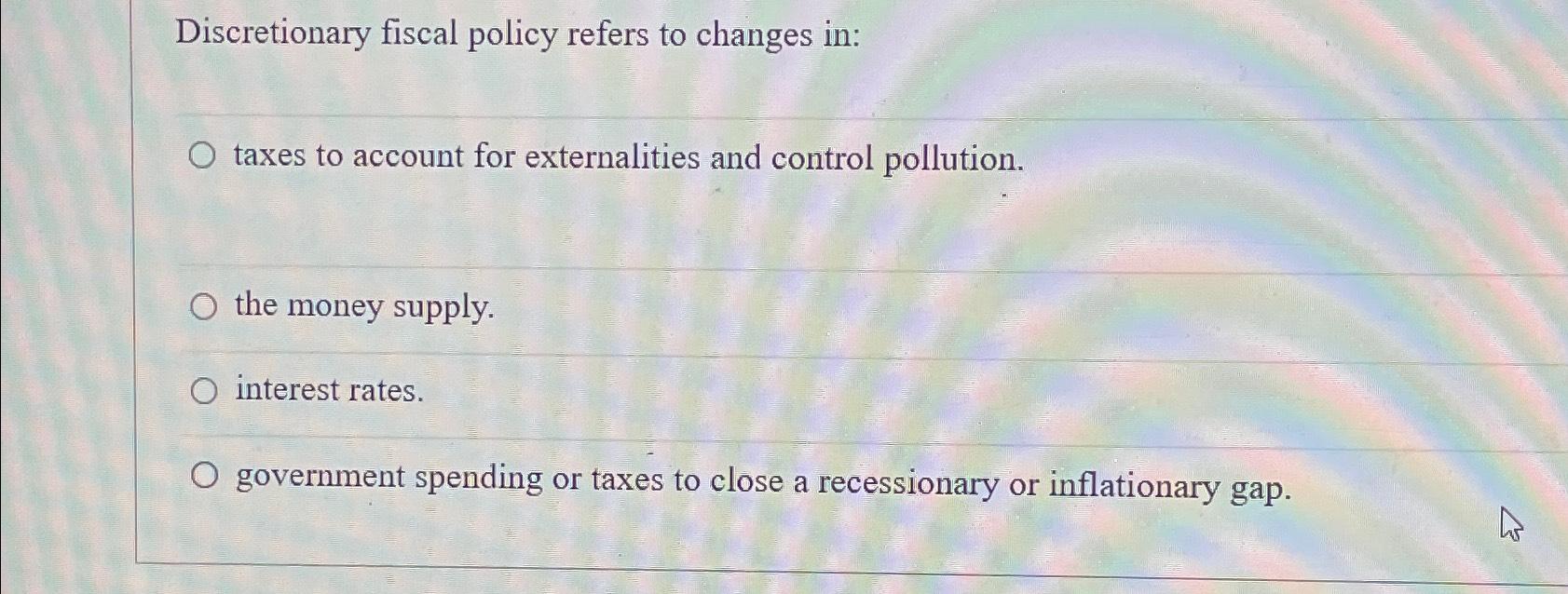 Solved Discretionary fiscal policy refers to changes