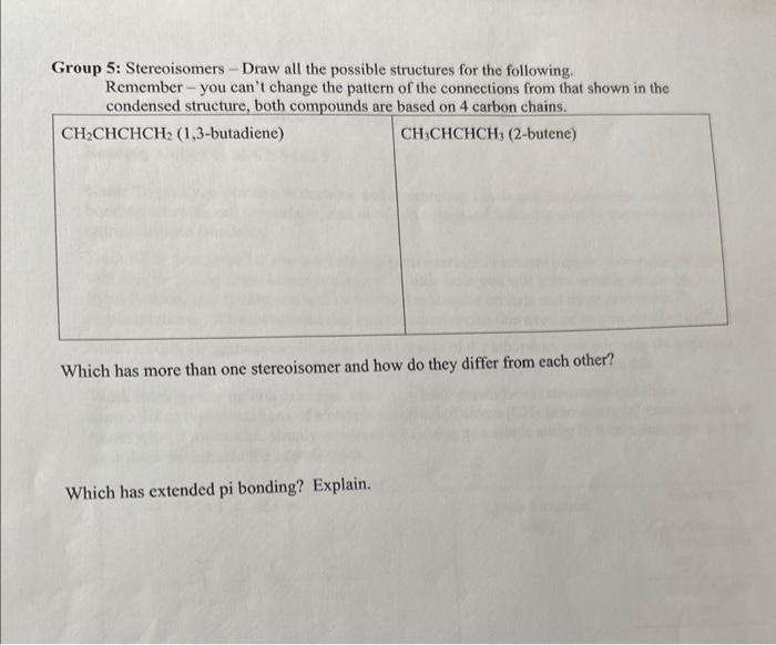 [Solved] Group 5 Stereoisomers Draw all the possible st