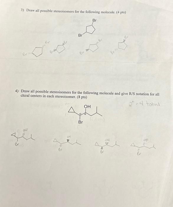 Solved 3) Draw all possible stereoisomers for the following