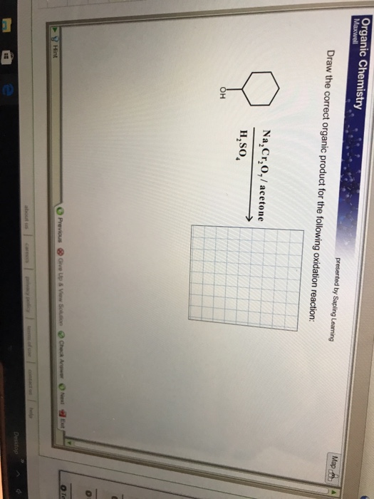 Draw the correct organic product for the oxidation reaction: When sodium dichromate (na2cr2o7) reacts with sulfuric acid (h2so4) in an oxidation reaction, it is commonly used to. The given reaction involves the oxidation of a 6 carbon ring compound with a substituent, ch2oh, using either k2cr2o7 in. To get started, note that the reaction involves a secondary alcohol being oxidized.