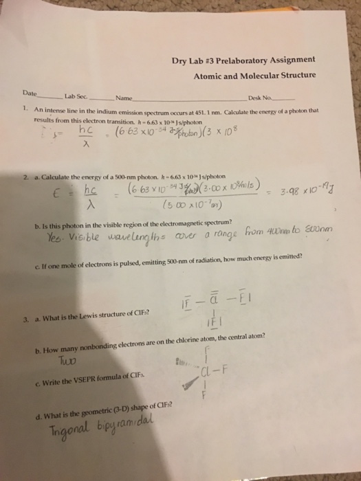 Dry Lab 3 Atomic And Molecular Structure Report Sheet Answers - The wavelength of the lines in the visible spectrum of hydrogen is determined using the balmber formula 1/x = 109677 (1/22. The mercury spectrum approval of the wavelength. Dry lab 3 report sheet atomic and. Dry lab 3 report sheet atomic and molecular structure desk no.
