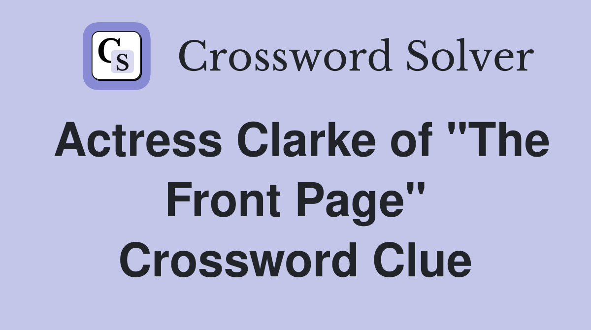 Actress Clarke of "The Front Page" Crossword Clue Answers Crossword