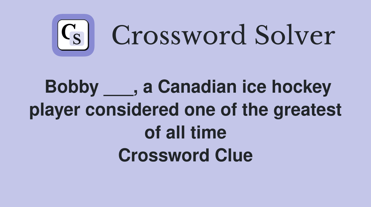 Bobby ___, former ice hockey player Crossword Clue Answers