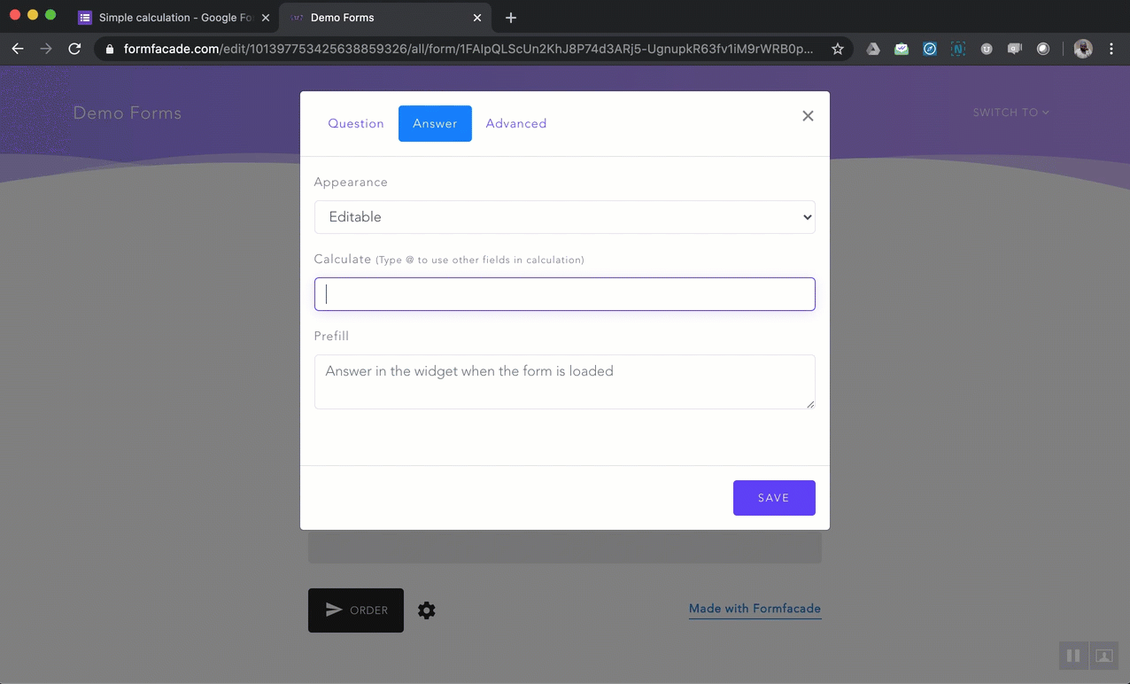 Formfacade How to add a simple calculated field to a google form?