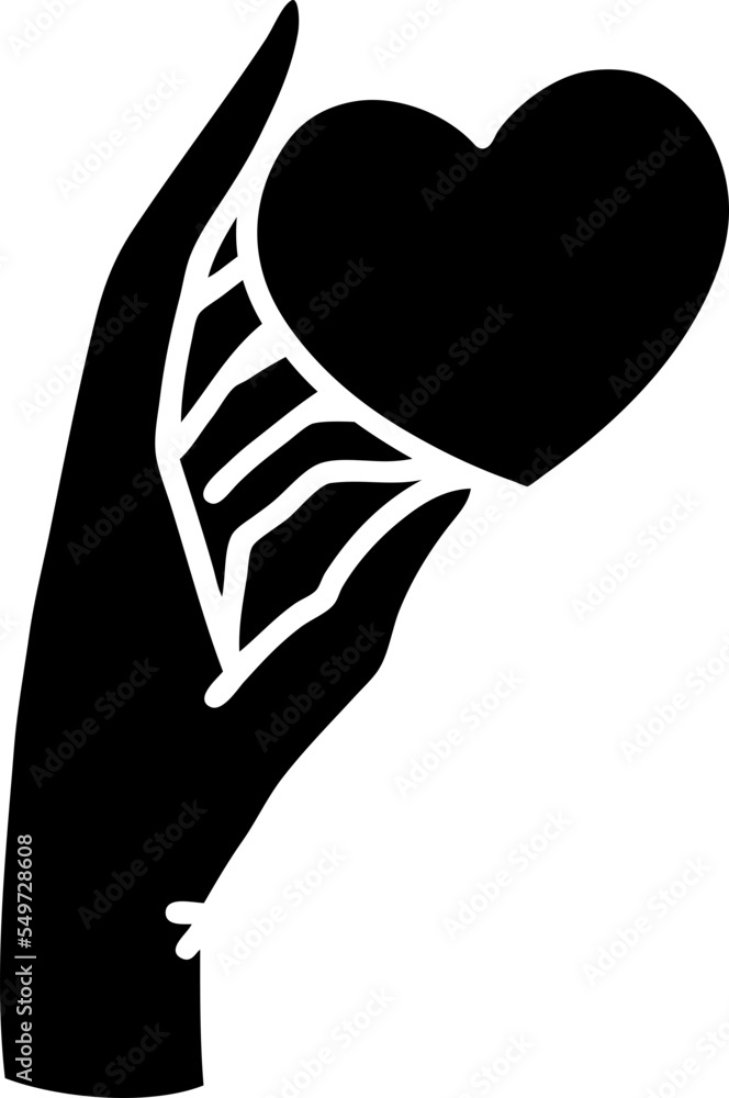 tattoo in black outline style of a hand holding a heart Stock Vector