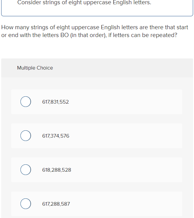 Solved (6 points) How many strings of 8 uppercase English