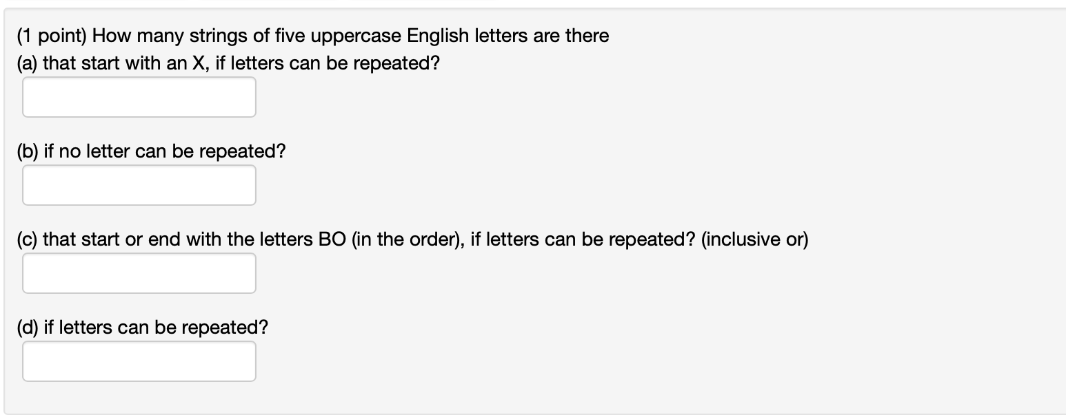 Solved (1 point) How many strings of five uppercase English
