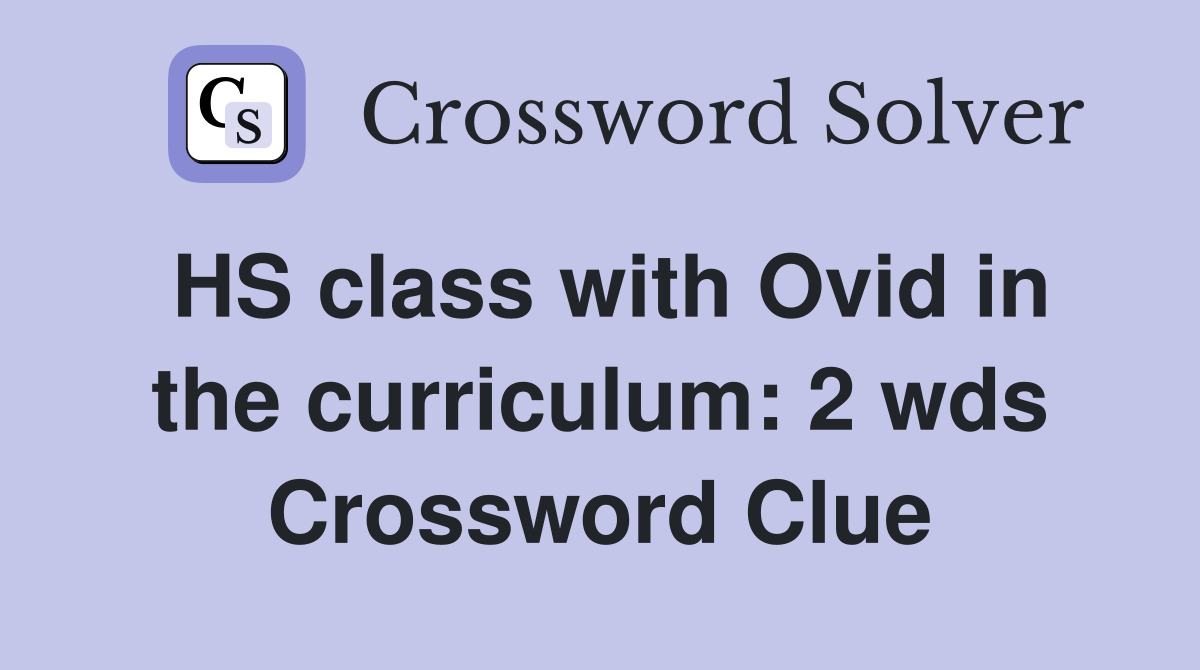 HS class with Ovid in the curriculum 2 wds. Crossword Clue Answers
