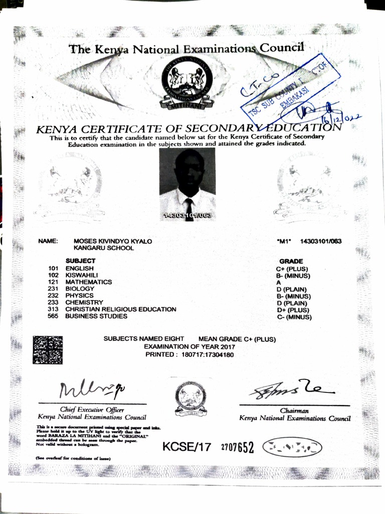 The kenya secondary school leaving certificate is given to students who have completed the secondary school education. Republic of kenya ministry of education, science and technologykenya primary school leaving certificate this is to cer. This file provides the official kenya secondary school leaving certificate form. It includes detailed information and a sample template for.