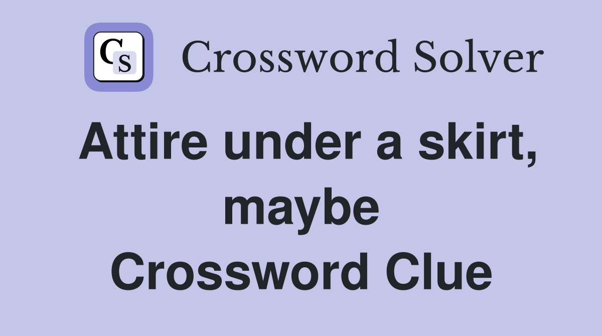 Attire under a skirt, maybe Crossword Clue Answers Crossword Solver