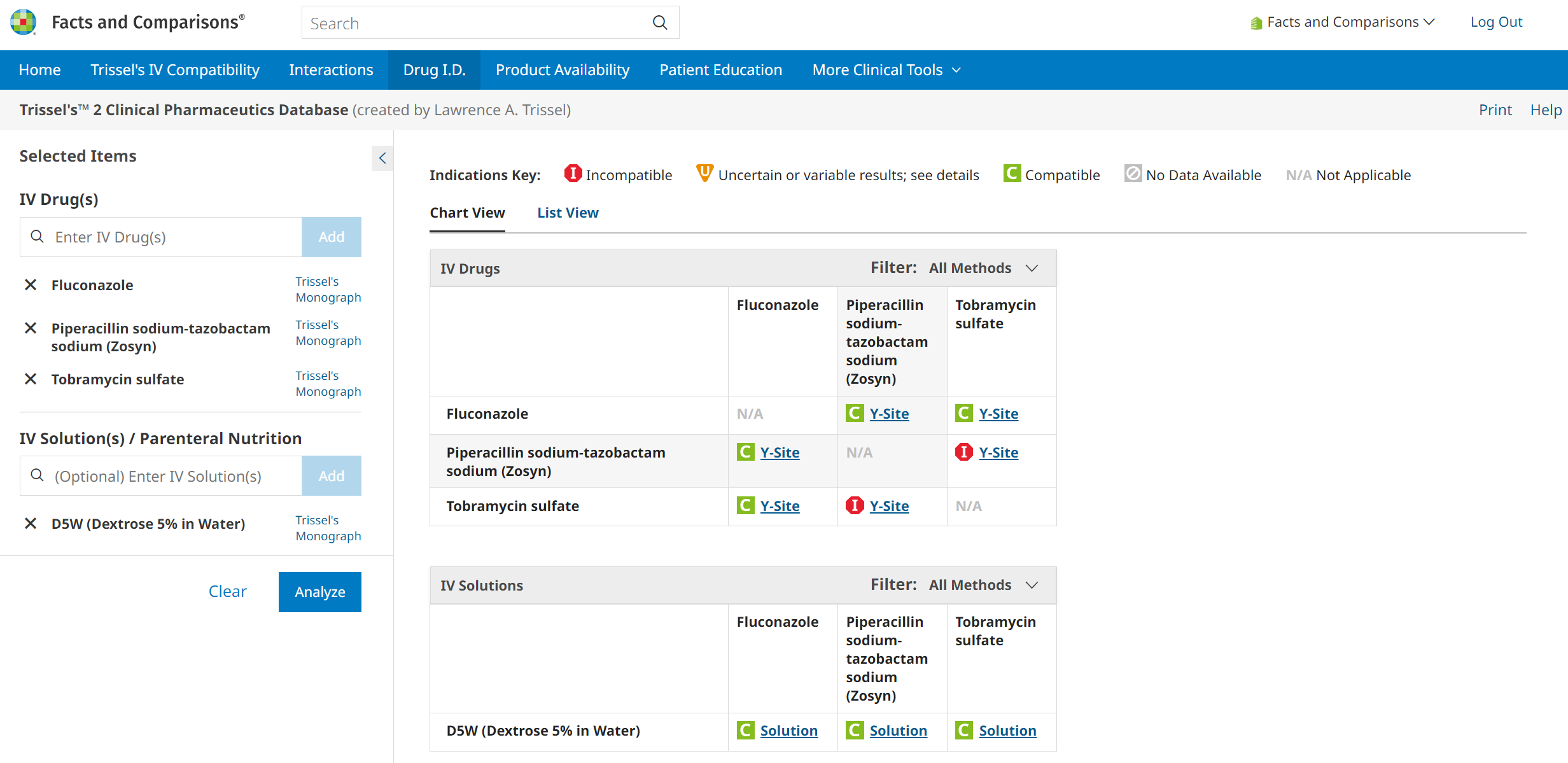 Facts & Comparisons User Academy Trissels IV Compatibility Databases