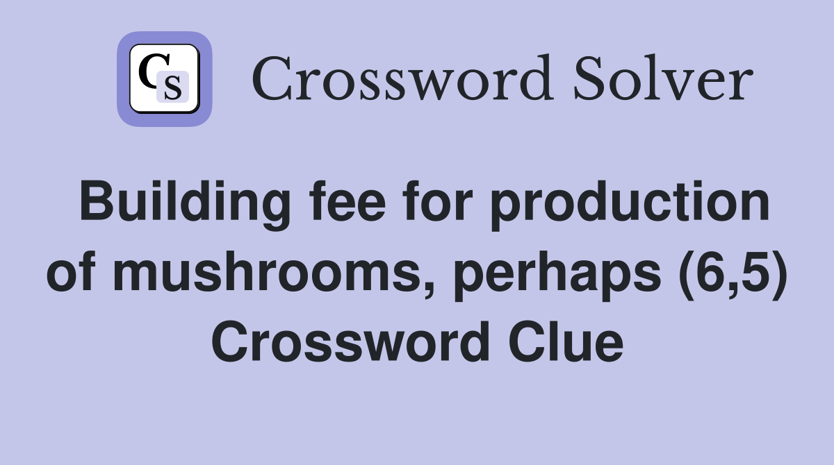 Building fee for production of mushrooms, perhaps (6,5) Crossword