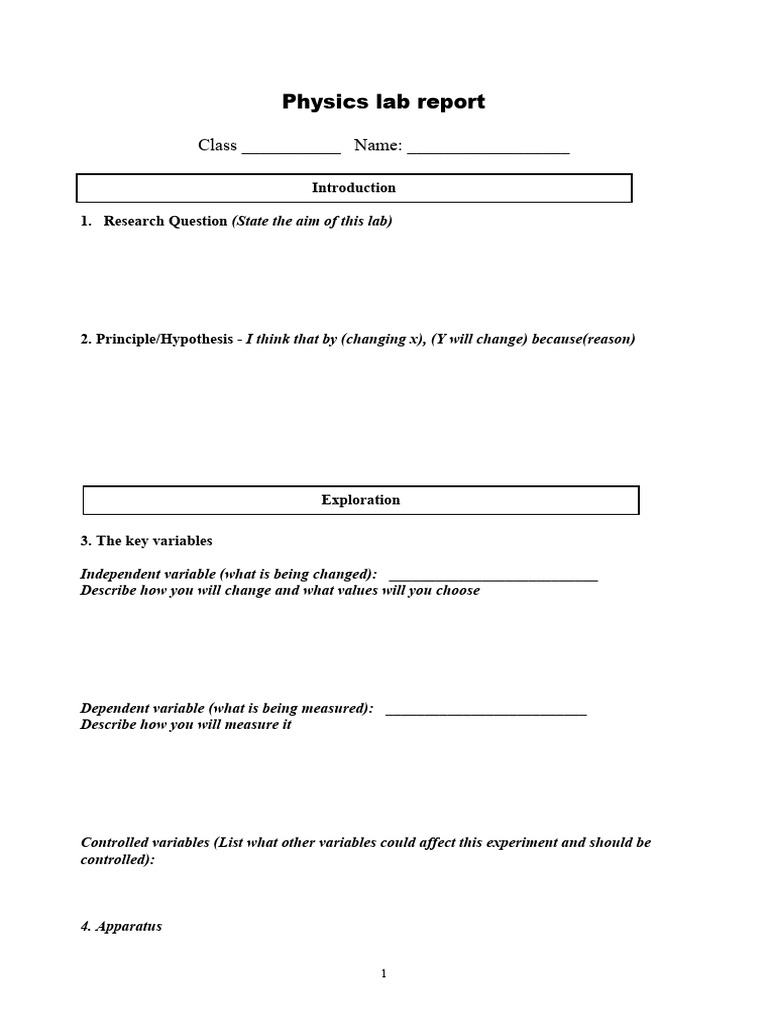 Physics Lab Report Outline PDF Concept Science