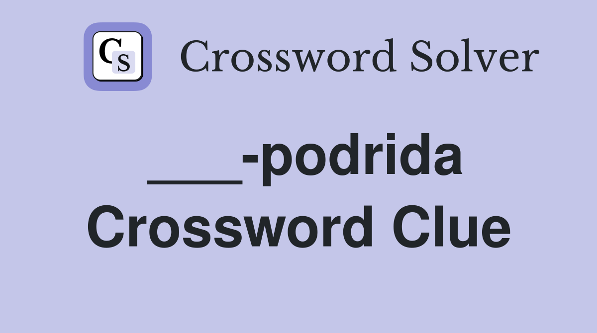 Find out the answer to ___ podrida, a crossword puzzle clue that appears 18 times in various. The crossword clue __ podrida with 4 letters was last seen on the january 01, 2010. The crossword solver found 30 answers to podrida 4 letters, 4 letters crossword clue. Here is the answer for the crossword clue podrida last seen in eugene.