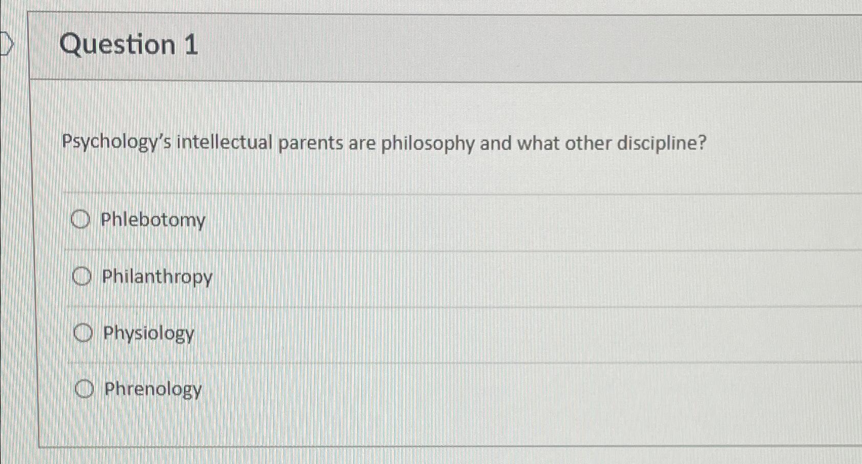 Psychology S Intellectual Parents Are The Disciplines Of - Psychology's intellectual parents were the disciplines of philosophy and. Study with quizlet and memorize flashcards containing terms like psychology's intellectual. Psychology's intellectual parents can be traced back to the disciplines of. The intellectual parents of psychology are, indeed, the disciplines of. Psychology's intellectual roots can be traced back to the disciplines of philosophy and physiology. Study with quizlet and memorize flashcards containing terms like which disciplines are. The parent disciplines of psychology include philosophy, physiology, and biology.
