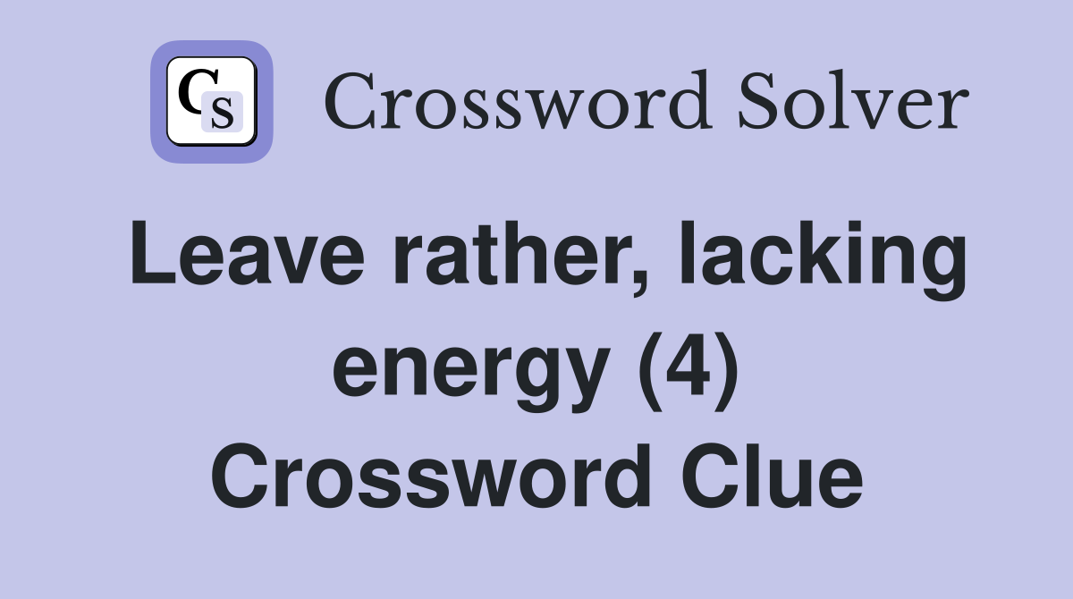 Leave rather, lacking energy (4) Crossword Clue Answers Crossword