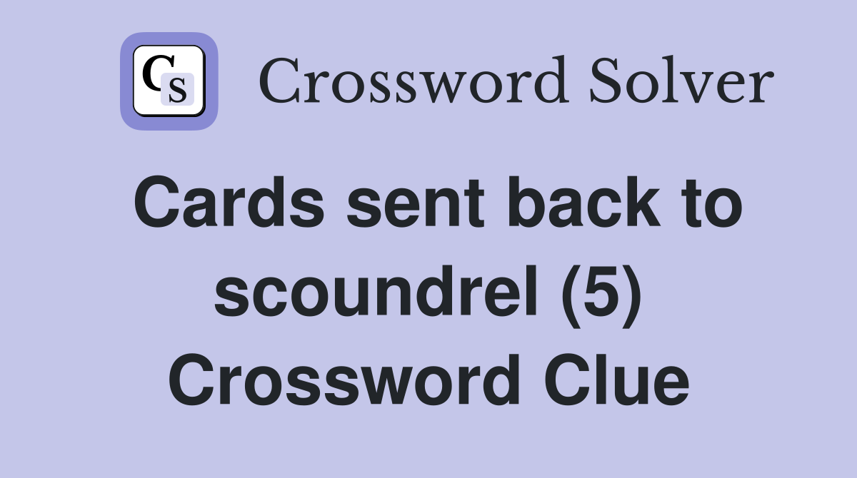 Cards sent back to scoundrel (5) Crossword Clue Answers Crossword