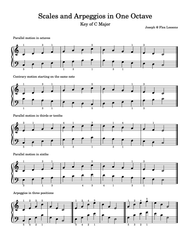Free PDF Piano Scales & Arpeggios in One Octave All Keys