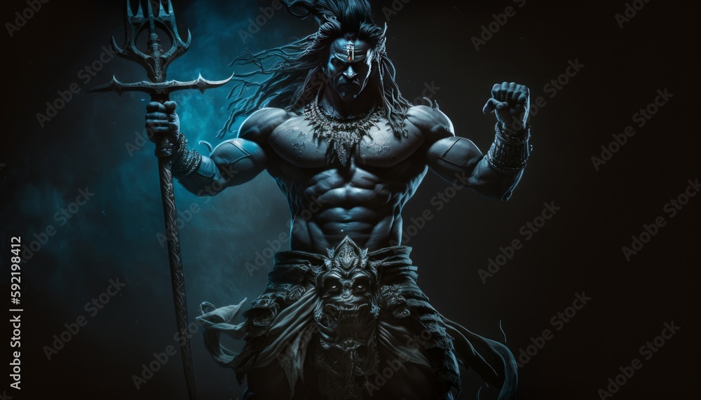 illustration of lord Shiva in Rudra form, generative, a.i Stock