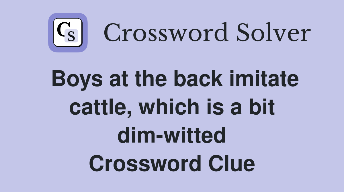 Boys at the back imitate cattle, which is a bit dimwitted Crossword