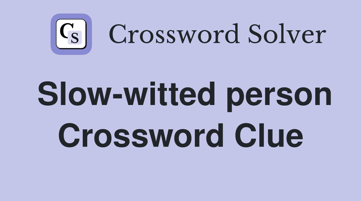 The crossword solver found 30 answers to slow witted person, 4 letters crossword clue. The top solutions are determined by. This crossword clue was last seen on. We found 100 possible answers to slow witted person crossword clue.
