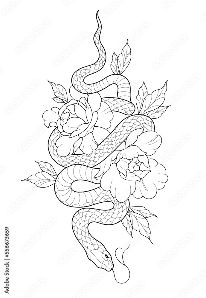 hand drawn sketch snake of flowers tattoo Stock Illustration Adobe Stock