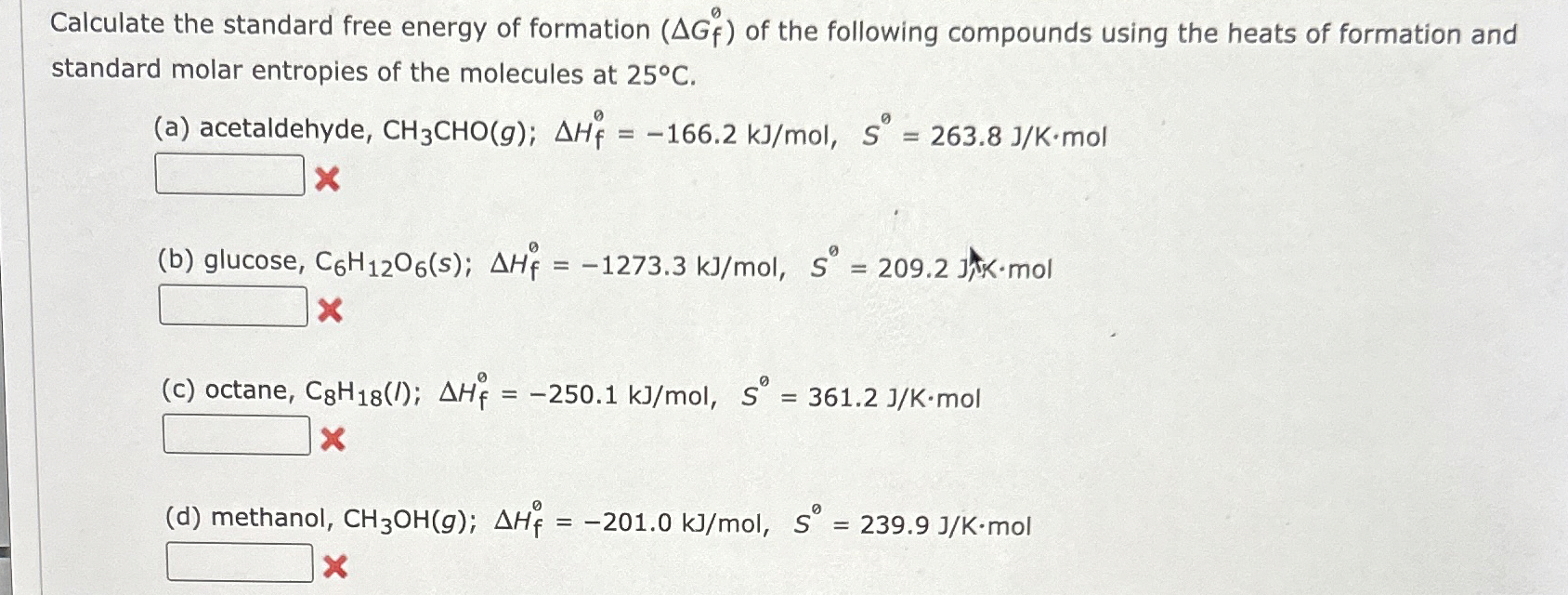 Solved Standard Free Energy of Formation standard free