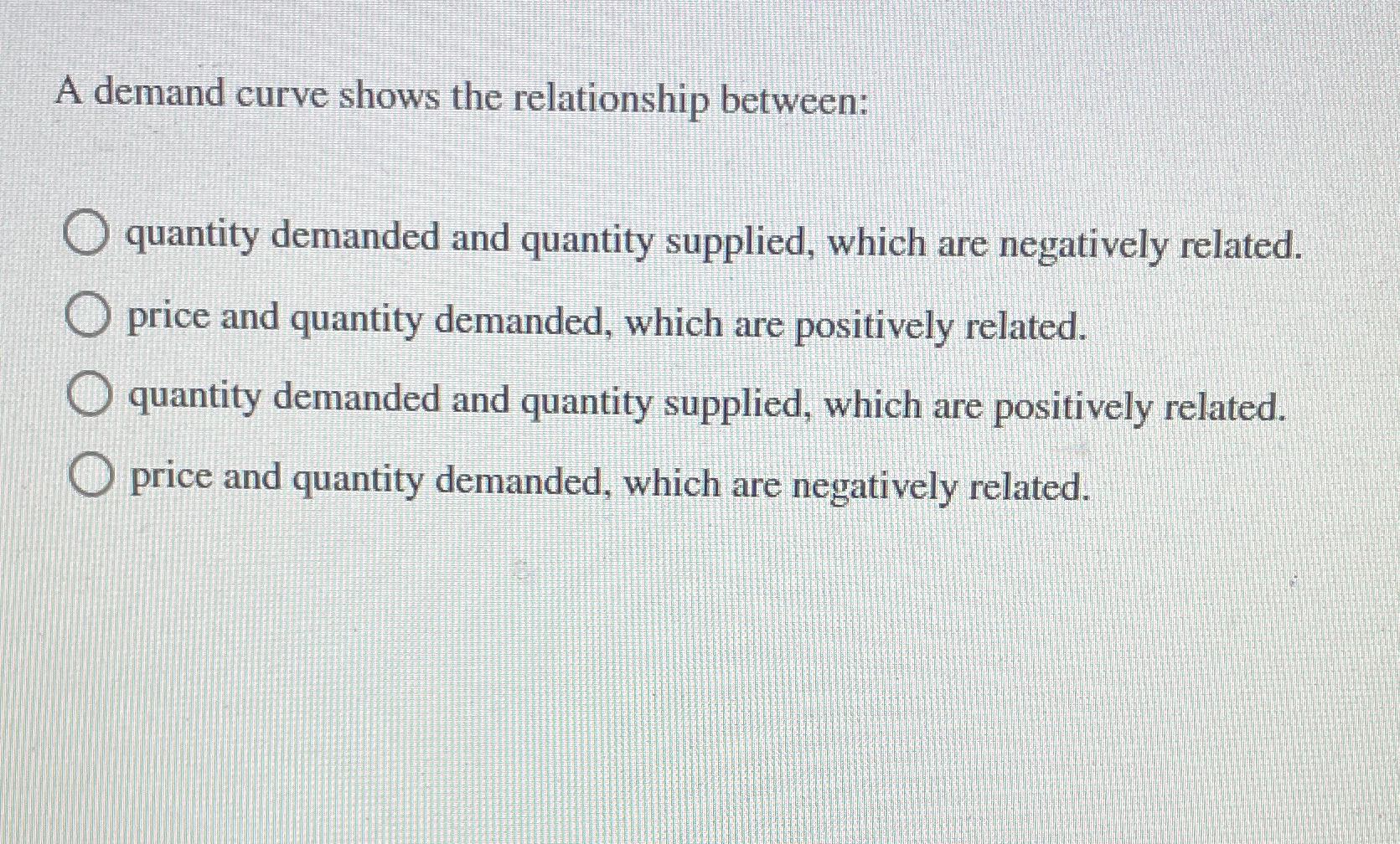 A demand curve is a graph depicting the inverse demand function, [1] a relationship between the. There are two ways to describe the same relationship between price and quantity. The demand curve in economics is a graphical representation of the relationship between the. A demand curve shows the relationship between price and quantity. Shows the relationship between quantity demanded and.