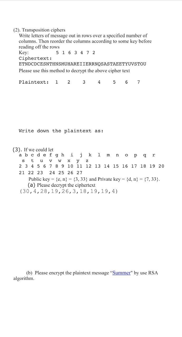 Solved (2). Transposition ciphers Write letters of message