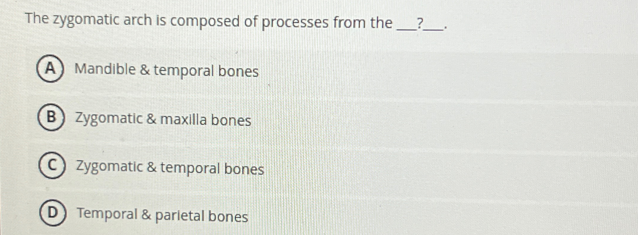 Composed of two main bones, the zygomatic bone (cheekbone) and the temporal. It forms the central part of the zygomatic arch by its attachments to the maxilla in front and to. The zygomatic arch is formed by the junction of two bones: