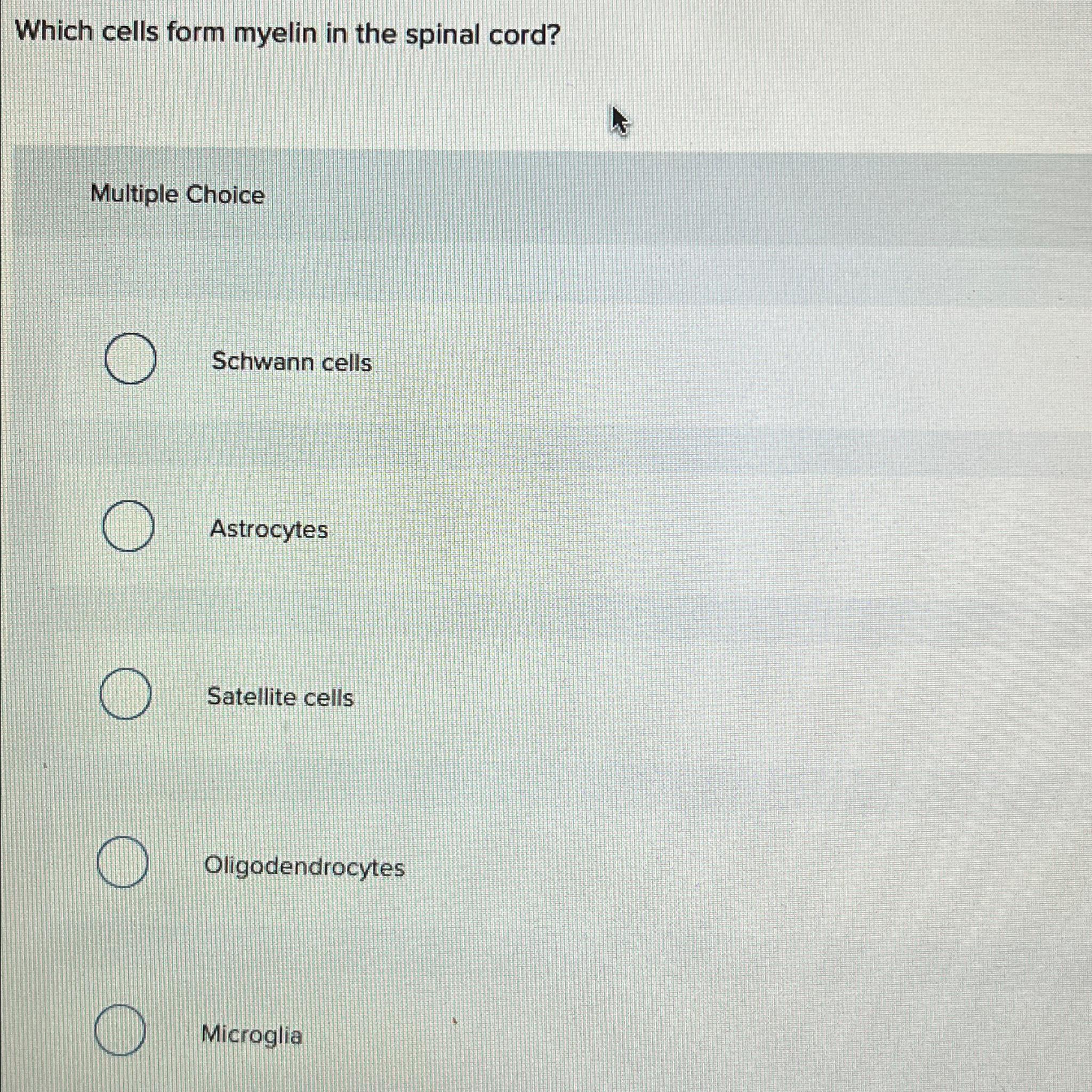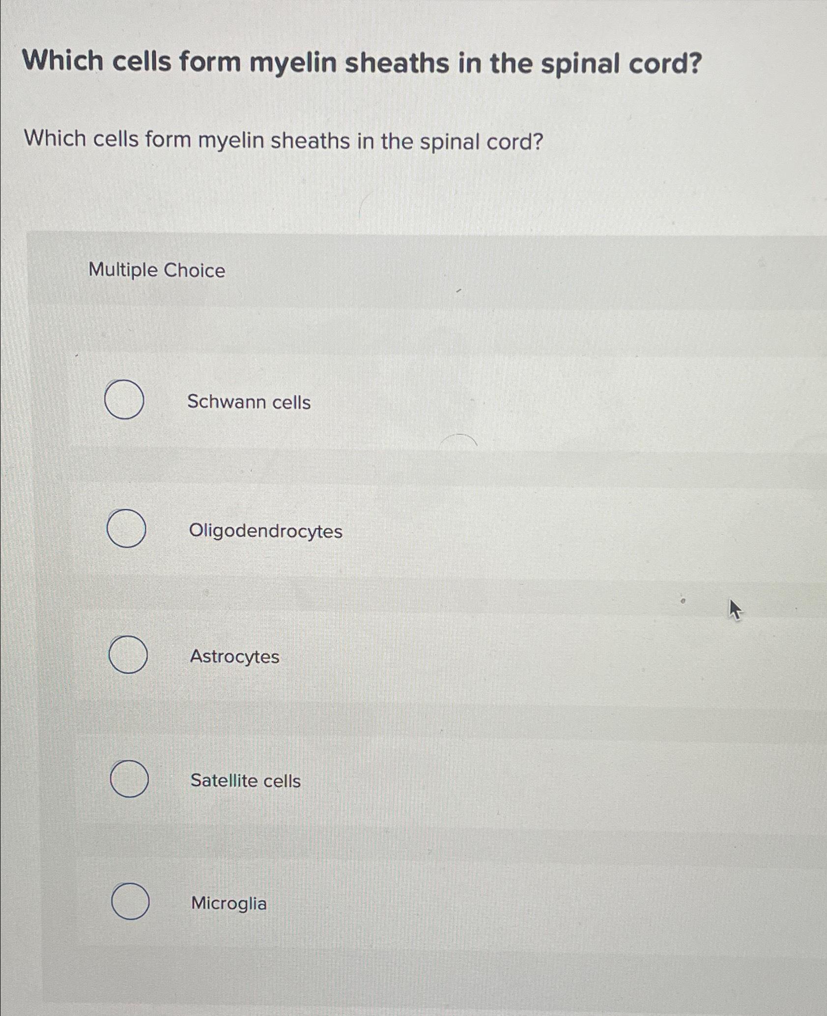 Solved Which cells form myelin in the spinal cord?Multiple